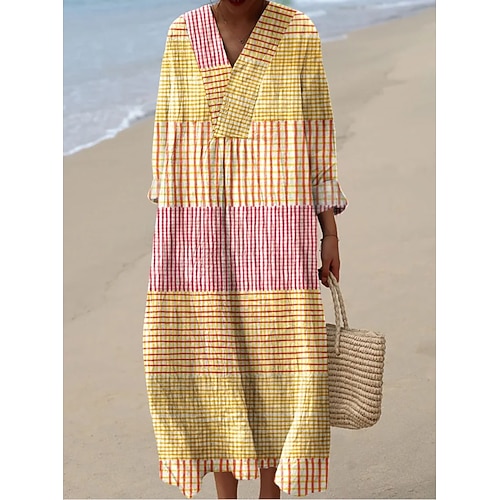 Per donna Abito maxi Vestito Estivo Abito a Tubino Vacanza Casual Spiaggia Uscire Vestibilità comoda Grafico Geometrico Astratto Manica Lunga Scollo a V Giallo Estate Primavera
