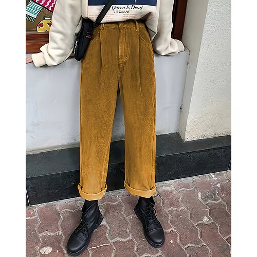 Per donna Chinos Dritto Vacanza Streetwear Casual Lunghezza intera Vita media Semplice Tasca Elastico in vita Calore Termico Confortevole Micro-elastico All'aperto Vacanza Quotidiano Marrone Cachi