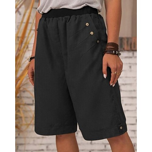 Per donna Pantaloni in cotone e lino Chinos Shorts Vacanza Essenziale Casual Lunghezza intera Vita Alta Semplice Tasca Fascia Elastica Comodo Morbido Confortevole Micro-elastico All'aperto Streetwear