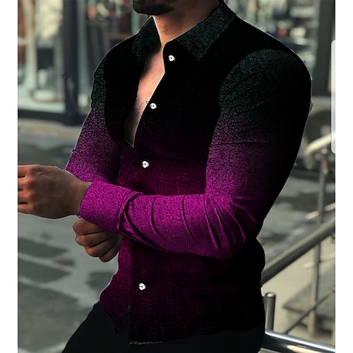 Per uomo Gradiente Geometrica Camicia Camicia con bottoni Manica lunga Di tendenza Originale Informale Giornaliero Per eventi Per uscire Primavera estate Collo ripiegabile Stampa 3D Bottone giù