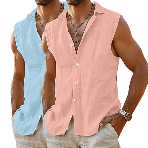 Per uomo Camicia Camicia di lino Camicia Estiva Abbigliamento da spiaggia Camicia con Bottoni Maglietta senza maniche Semplice Vacanza Crociera Bianco rosa Pink Blu Bianco Bianco Bianco blu