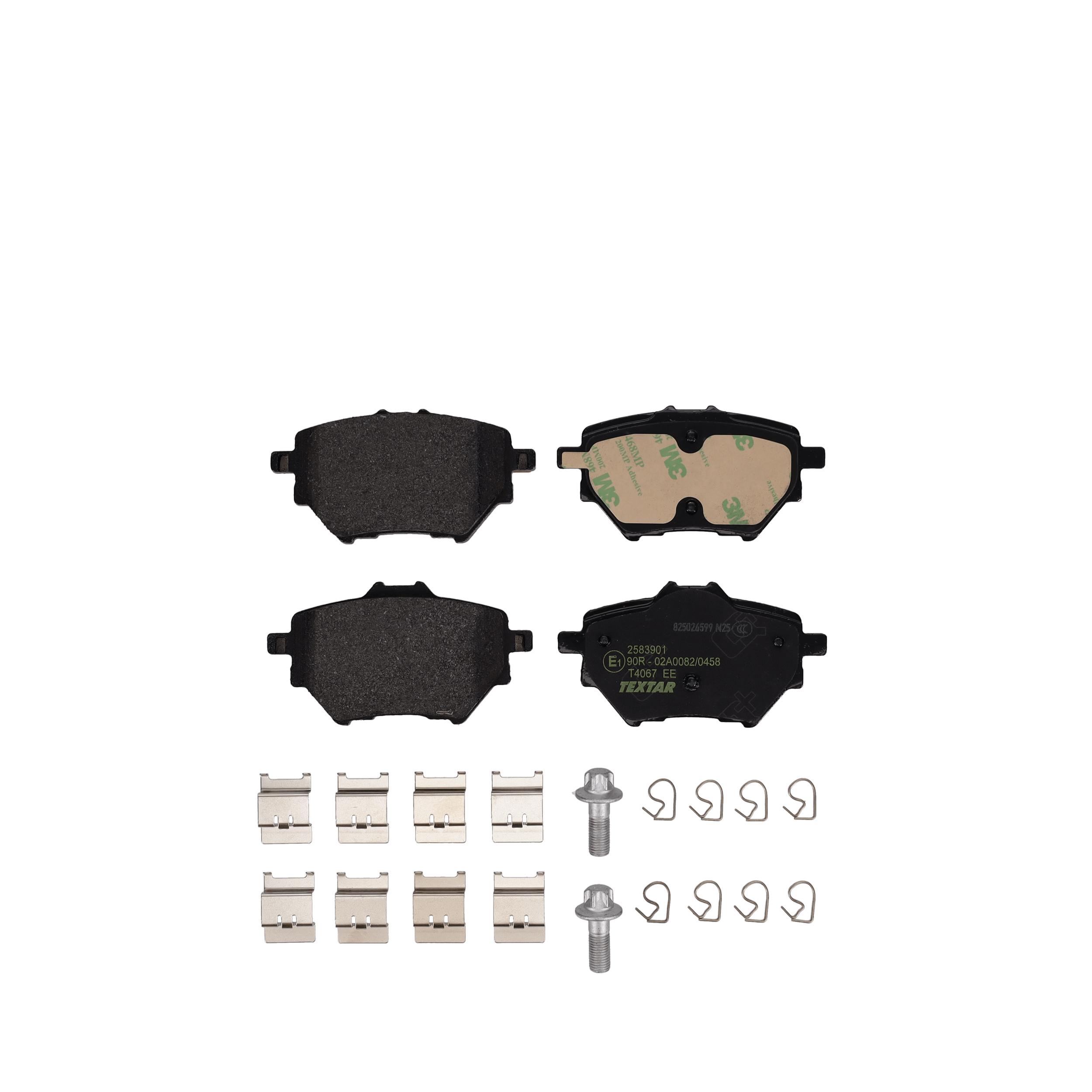 TEXTAR Bremsbelagsatz, Scheibenbremse 2583901 hinten rechts links mit Zubehör für CITROËN (DF-PSA) FORD (JMC) PEUGEOT FIAT TOYOTA VAUXHALL OPEL HAVAL