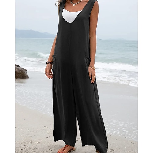 tuta salopette normale da donna streetwear tinta unita senza maniche scollo a V tasche per uscire fine settimana vestibilità regolare nero verde chiaro rosa estate