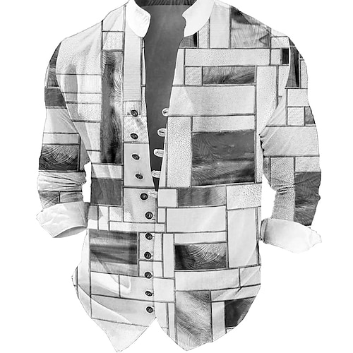 Per uomo Blocco di colori Motivo Geometrico Geometria Camicia Camicia con Bottoni Manica Lunga Moda Streetwear Designer All'aperto Casuale Quotidiano Estate Primavera Autunno Collo alla coreana