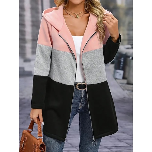 Per donna Giacca con Cappuccio Confortevole Traspirante Tasca Bottoni Casual Blocco di colori Vacanza Streetwear Casuale Abbigliamento quotidiano Cerniera Lungo Con Cappuccio Vestibilità regolare
