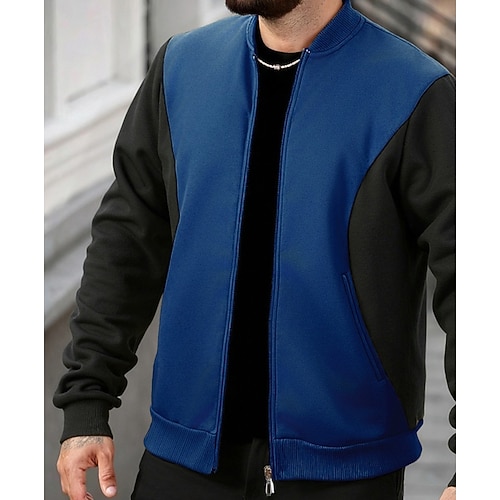 Per uomo Giacca Casual Giacca College Vacanza Quotidiano Traspirante Tasca Splice Primavera Autunno Blocco di colori Moda Classico Collo alla coreana Regolare Nero Cachi Verde militare Blu scuro