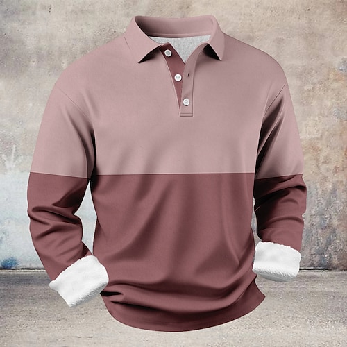 Per uomo Blocco di colori Geometrico Polo Camicie termiche Manica Lunga Magliette polo Bavero Casual Athleisure Ferie Abbigliamento quotidiano Stampa 3D Primavera Autunno Inverno Blu Rosa Viola