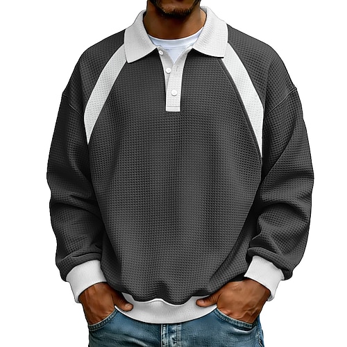 Per uomo Magliette Polo a Nido d'Ape Polo Casuale Streetwear Bavero Manica Lunga Essenziale Moderno Blocco di colori Patchwork Bottoni Primavera Autunno Vestibilità regolare Nero Verde chiaro Blu