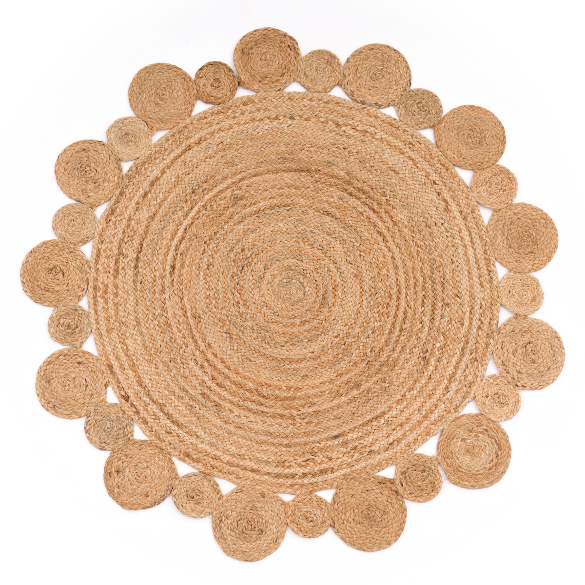 KADIMA DESIGN Jute Teppich Boho wendbar schmutzabweisend Natur Rund 160D | 100% Jute, Rücken aus Jute | Florhöhe: 5 mm | pflegeleicht