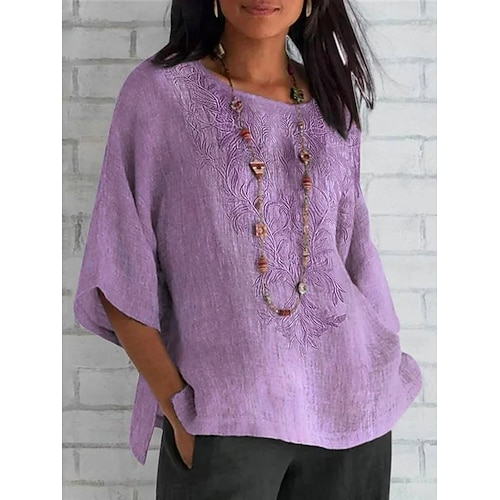 Camicia da donna con maniche lunghe floreale grafica quotidiana casual a manica 3/4 colletto rotondo top regolari stampa blu viola estate primavera