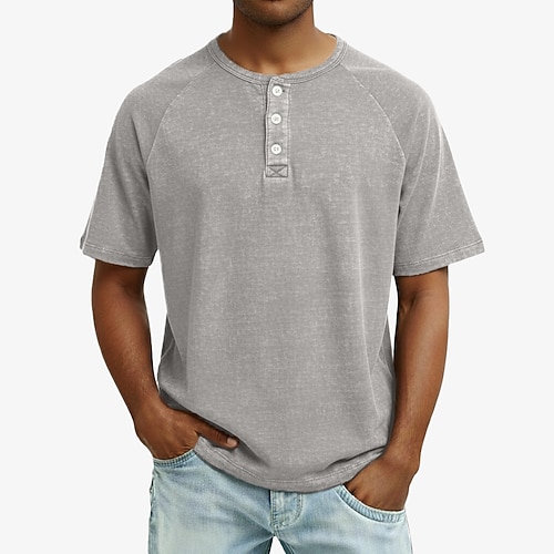 Da uomo Maglia Henley Maglietta Manica Corta Henley Estate Primavera Tutte le stagioni Tinta unica Moda Designer Casual Bottoni Minimalista Manica corta Casuale Quotidiano All'aperto Blu chiaro Nero