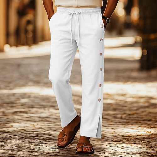 Per uomo Pantaloni di Lino Pantaloni Pantaloni Estivi Pantaloni Larghi Coulisse Elastico in vita Bottone laterale Semplice Traspirante Lunghezza al ginocchio All'aperto Vacanza Casuale Vacanza Stile