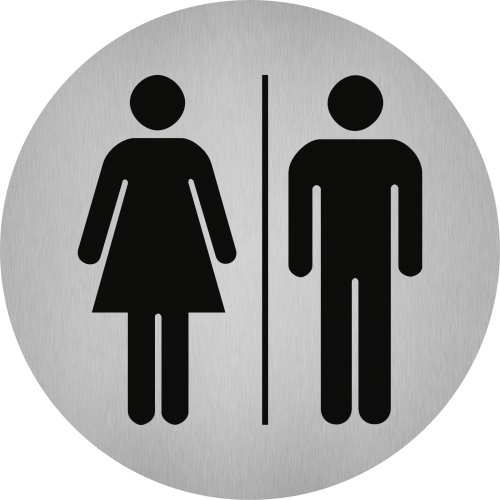 Aufkleber - Piktogramm WC Damen/Herren, Edelstahl, selbstklebend, Ø 50 mm