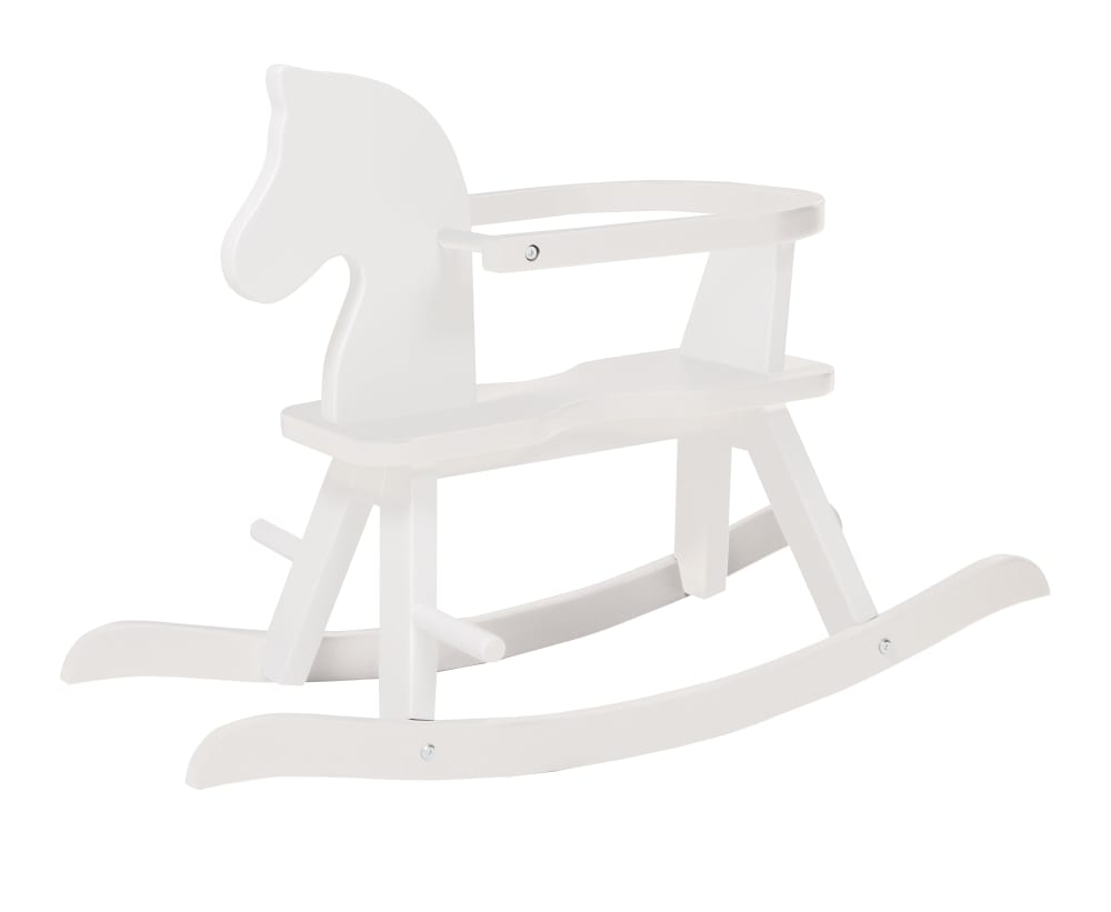 Cavallo a dondolo con arco di sicurezza rimovibile in legno bianco