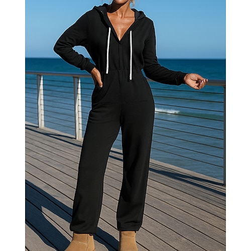 Per donna Tuta intera Abiti da salotto Coulisse Tinta unita Completo Abbigliamento Autunno Nero Caffè All'aperto Viaggio Sportivo Traspirante Manica Lunga Sport Abbigliamento sportivo Micro-elastico