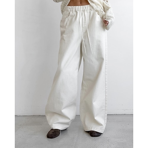 Per donna Gamba larga Chinos Dritto Vacanza Streetwear Essenziale Lunghezza intera Lungo Vita media Tinta unica Coulisse Tasca Comodo Comodità Inelastico Micro-elastico All'aperto Vacanza Streetwear