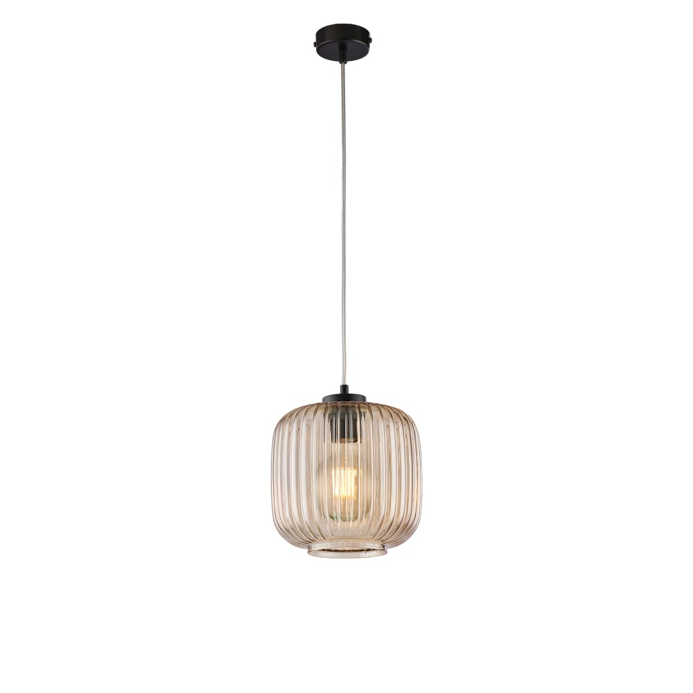 Sospensione 1 luce ferro nero e vetro ambra plisse'