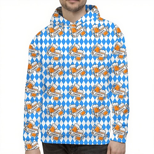 bavarese Monaco Tedesco Manica a Vescovo Felpa con cappuccio Maglione Birra Pretzel Grafico per Per uomo Adulti Stampa 3D per Carnevale Birra Oktoberfest Feste Casual Quotidiano
