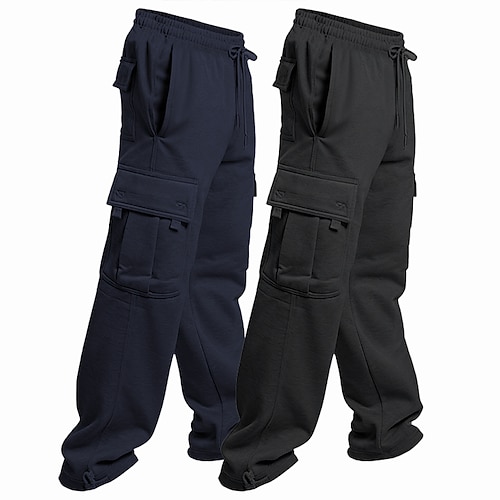 Confezioni multiple 2 pezzi Per uomo Blu navy nero Pantaloni da Tuta Cargo Pantaloni Coulisse Elastico in vita Semplice Vacanza Abbigliamento quotidiano Poliestere Primavera