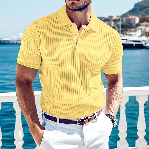 Per uomo Top a Maglia a Coste Testurizzato Casuale Lavoro Bavero Colletto Polo a Coste Manica Corta Essenziale Moderno Blocco di colori Bottoni Lavorato a maglia Primavera Estate Vestibilit