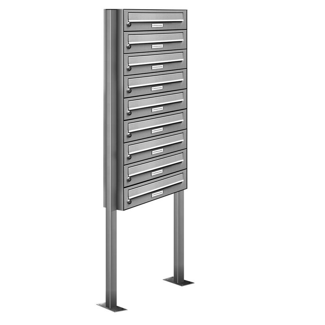AL Briefkastensysteme 9 Fächer Premium Edelstahl Stand Briefkasten Anlage für Post A4 modern, robust, wetterfest, Artikelnummer: 132T9S1