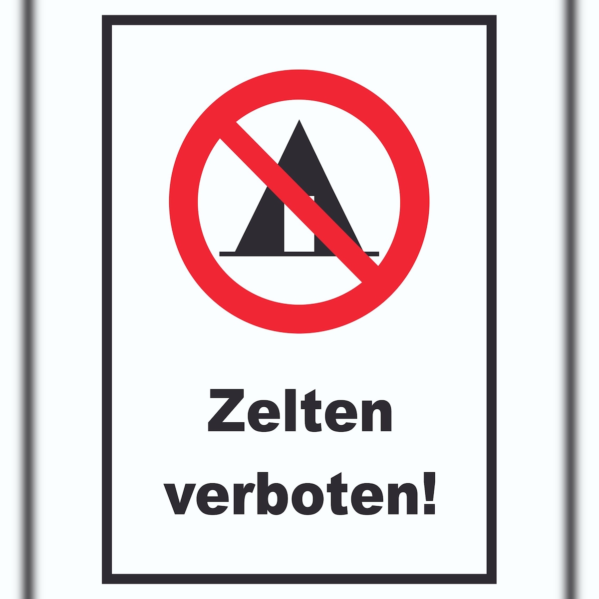Zelten verboten Schild A2 Rückseite selbstklebend