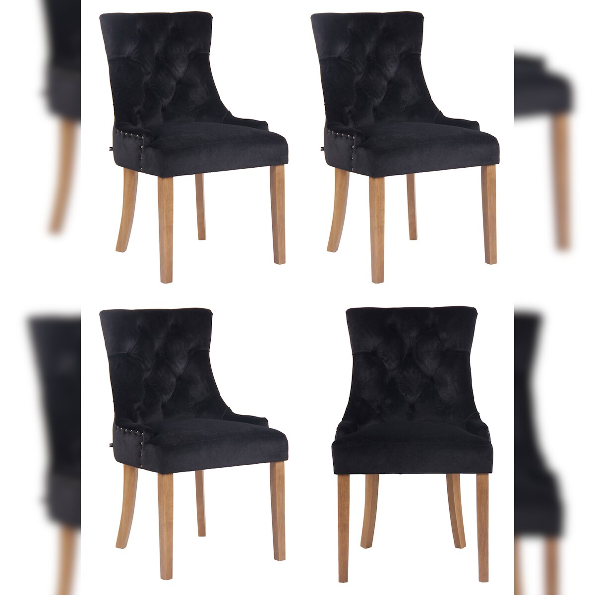 CLP 4er Set Esszimmerstuhl Aberdeen Samt schwarz/antik-hell