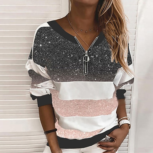 Per donna Felpa Pullover Felpe con cerniera A Pois Blocco di colori Semplice Elegante Caldo Moda Manica Lunga Girocollo Top Regolari Casa Lavoro Streetwear Patchwork Stampato Zip a un quarto Blu Nero