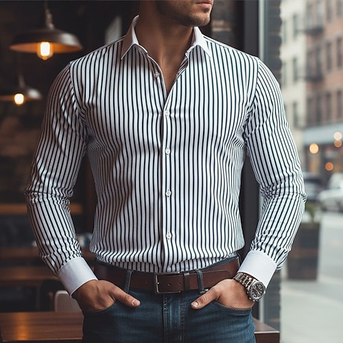 Per uomo Camicia Camicia elegante Camicia non stiro Camicia con Bottoni Blocco di colori Quotidiano Affari Blu Blu chiaro Nero Bianco Manica Lunga Collo ripiegato Tutte le stagioni Abbigliamento
