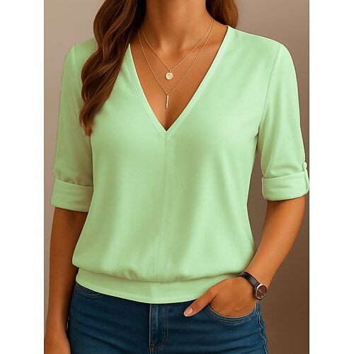 Per donna Blusa Semplice Casual Manica Lunga Scollo a V Top Regolari Quotidiano Sportivo Bottoni Bianco Giallo Blu Verde Primavera, Autunno, Inverno, Estate