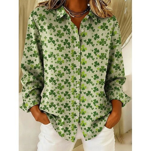 Festa di San Patrizio Per donna Camicia Trifoglio Elegante Vintage Casual Manica Lunga Colletto a Camicia Top Regolari Quotidiano Lavoro Ferie Bottoni Stampato Verde Estate Primavera Autunno