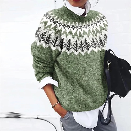 Per donna Maglietta Grafico Geometria Vintage Elegante Moderno Manica Lunga Girocollo Top Regolari Quotidiano Stampato Blu Viola Verde Grigio Autunno Inverno