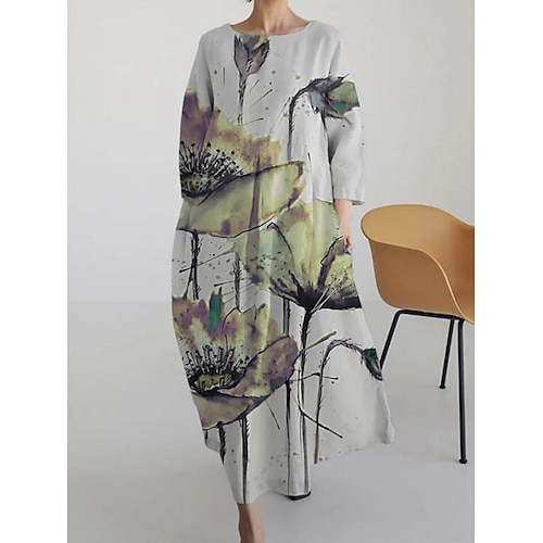 Per donna Abito maxi Abito a trapezio Abito aderente e svasato Festa Compleanno Casual Feste Ufficio Ospite di nozze Vestibilità comoda Floreale Grafico Manica Lunga Girocollo Giallo Rosa Blu Verde