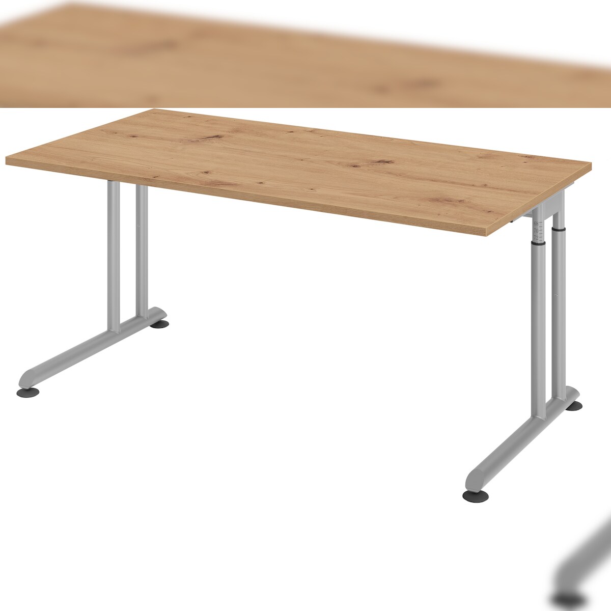bümö höhenverstellbarer Schreibtisch Z-Serie 160x80 cm in Asteiche, Gestell in Silber - PC Tisch für's Büro manuell höhenverstellbar, Computertisch