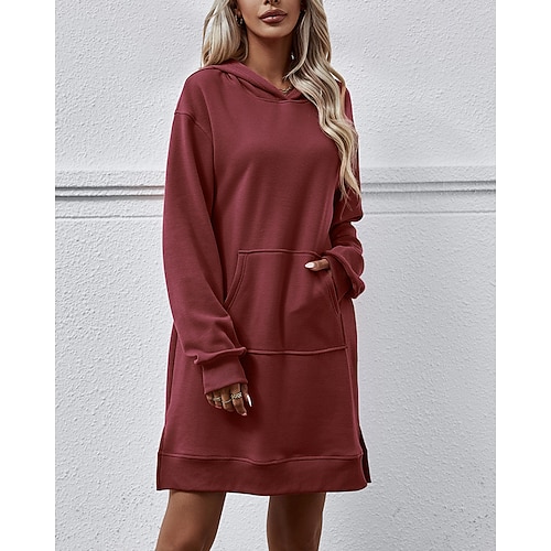 Per donna Abito Midi Abito con Cappuccio Vestito Casual Moda Moderno Quotidiano Uscire Weekend Vestibilità regolare Semplice Manica Lunga Con Cappuccio Rosa Borgogna Viola Rosso rosa Primavera Autunno