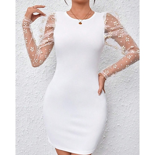 Per donna Mini Abito Tubino Moderno All'aperto Vacanza Uscire Vestibilità regolare Semplice Manica Lunga Girocollo Nero Bianco Rosa Azzurro Primavera Autunno