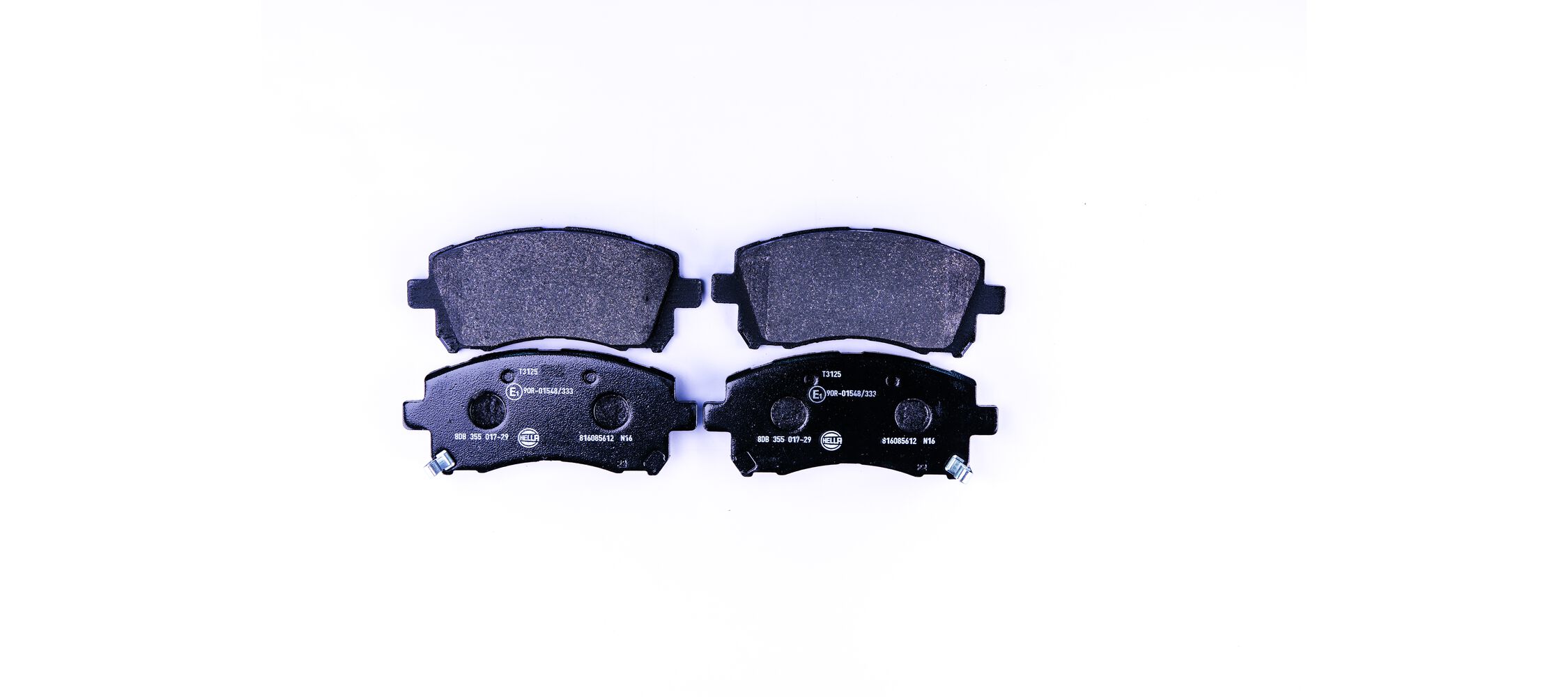 HELLA Bremsbelagsatz, Scheibenbremse vorne rechts links für MITSUBISHI INFINITI AMC SUBARU NISSAN 26296AE020 26296AC050 26296AE141 8DB 355 017-291