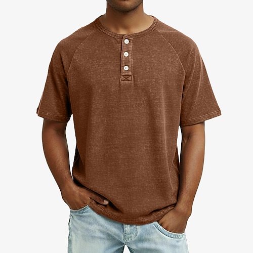 Da uomo Maglia Henley Maglietta Manica Corta Henley Estate Primavera Tutte le stagioni Tinta unica Moda Designer Casual Bottoni Minimalista Manica corta Casuale Quotidiano All'aperto Blu chiaro Nero