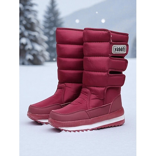 stivali invernali impermeabili da donna color bordeaux con fodera in pelliccia sintetica: eleganti stivali da neve con cinturini regolabili per comfort e calore, perfetti per il freddo, le attività invernali all'aperto e le gite sugli sci