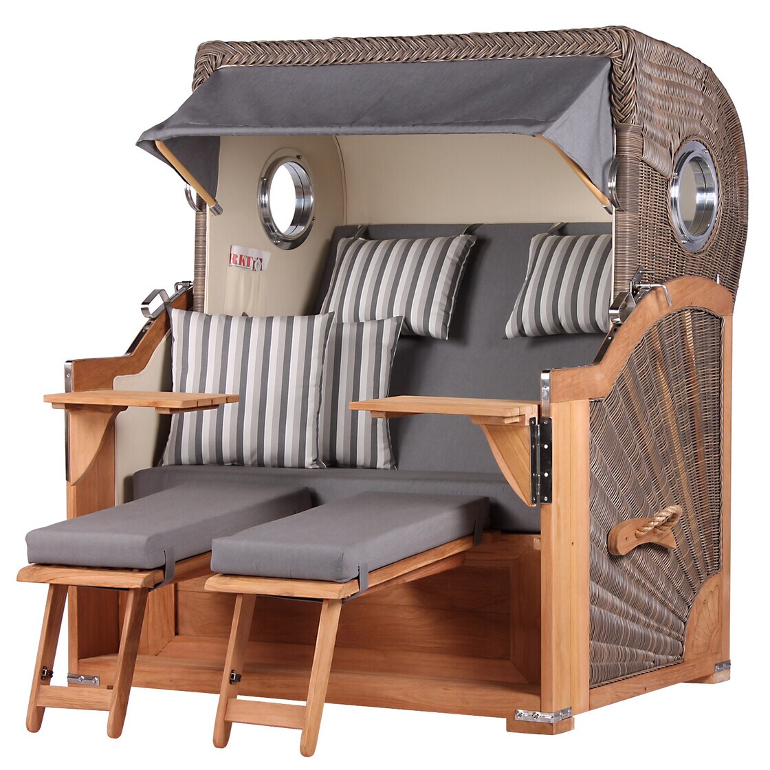 Mr. Deko Strandkorb Komplettset - bene living - Königssee Teak Bullauge - PE grau - Modell 544 - inkl. Liftersystem