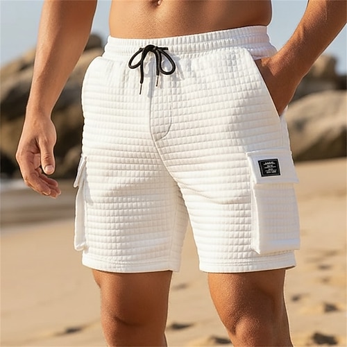 Per uomo Pantaloncini Waffle Pantaloncini cargo Pantaloncini Estivi Shorts da Spiaggia Pantaloncini strutturati Coulisse Elastico in vita Semplice Comodità Traspirante Sopra il ginocchio Quotidiano