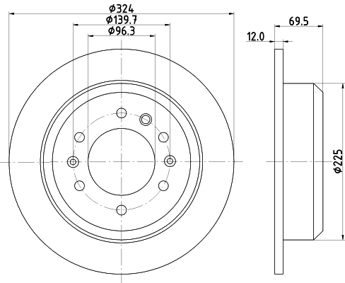 HELLA Bremsscheibe hinten rechts links voll 324mm für KIA 584114D000 8DD 355 114-041