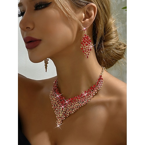 set di collana e orecchini da donna color oro con dettagli in cristallo rosso - gioielli glamour per feste