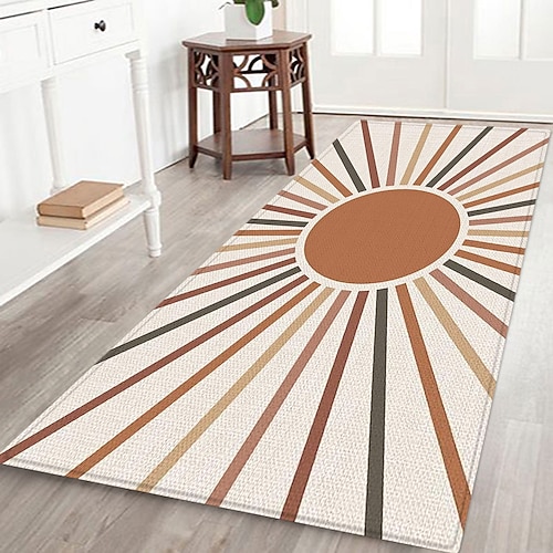 tappeto da corridoio con motivo geometrico a sole, tessuto di flanella stampato, decorazione per pavimenti per la casa, zerbino antiscivolo morbido, tappeto per ingresso e bagno
