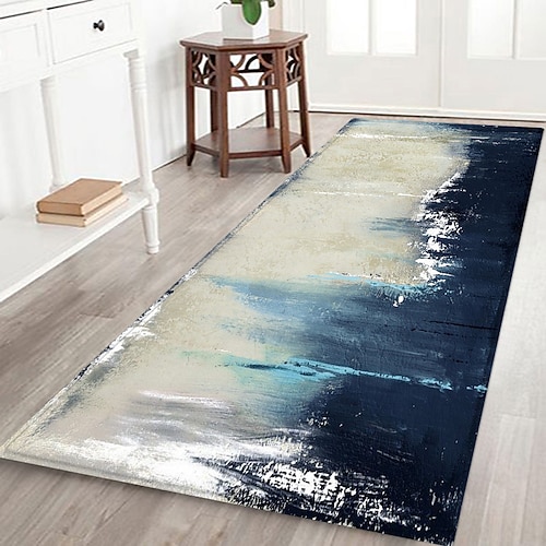 tappeto da corridoio con motivo artistico a schizzi d'inchiostro, tessuto di flanella stampato, decorazione per il pavimento della casa, zerbino antiscivolo morbido, tappeto per ingresso e bagno