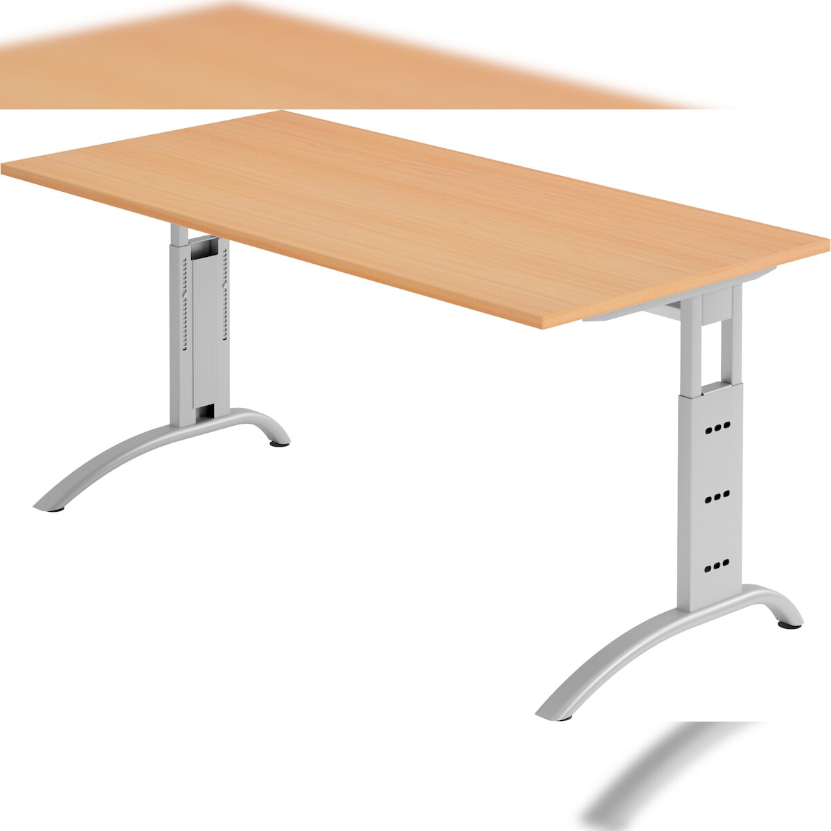 bümö manuell höhenverstellbarer Schreibtisch 160x80 cm in Buche - PC Tisch höhenverstellbar & groß, höhenverstellbarer Tisch Büro, großer