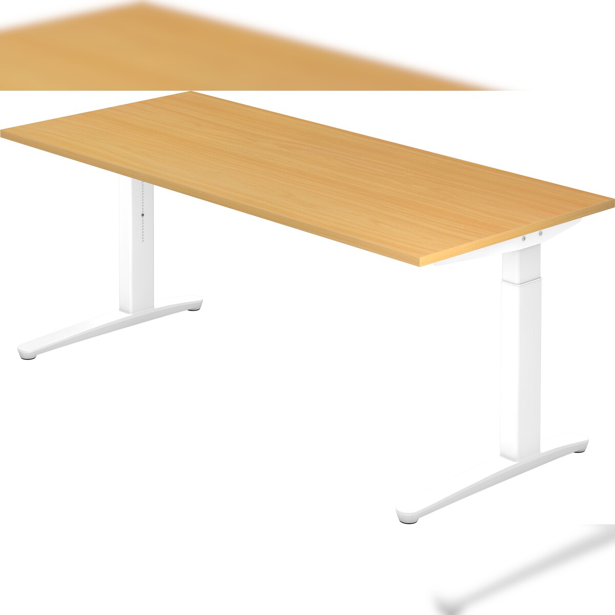 bümö manuell höhenverstellbarer Schreibtisch 180x80 in Buche, Gestell in weiß - PC Tisch höhenverstellbar & groß, höhenverstellbarer Tisch Büro,