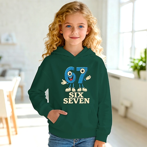 Unisex Ragazze 3D Grafico Gergo divertente 67 Felpa con Cappuccio Maglione Manica Lunga Stampa 3D Primavera Autunno Sport Moda Streetwear Bambini 4-12 Anni Con cappuccio All'aperto Casuale Quotidiano