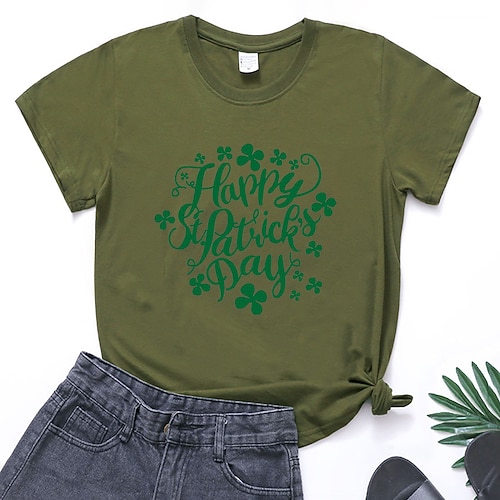 Giorno di San Patrizio Festa di San Patrizio Per donna Maglietta Trifoglio Lettera Moda Manica Corta Girocollo Top Regolari Casuale Giorno di San Patrizio Stampato Giallo Verde chiaro Rosa Verde