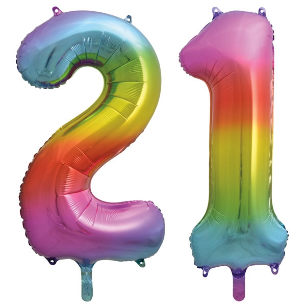 XL Folienballon Regenbogen Zahl 21